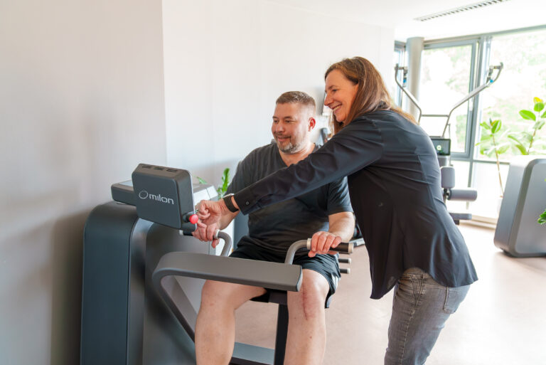 im 1. Stock des „blauen Gebäudes“. In stilvollem Ambiente erwartet Sie erstklassige Therapie nach modernsten Erkenntnissen auf einem hohem Qualitätsstandard. Zur Ergänzung der Therapie steht ein Trainingsraum zur Verfügung. Ihr Gesundheitstraining können Sie ein einem modernen Milon-Gesundheitszirkel durchführen.